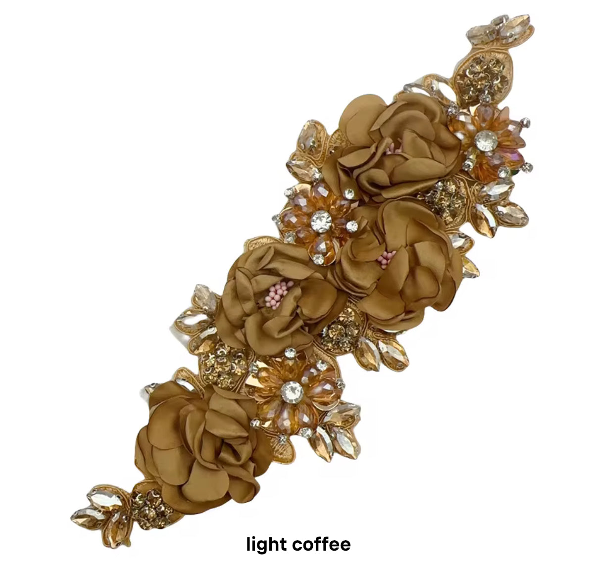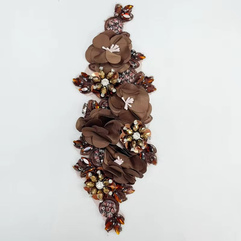 Generic 1Pcs Handcraft 3D Flower Rhinestone Beaded Applique Wedding Dress Headband Sewing DIY